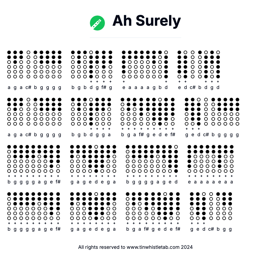 Ah Surely - Tin Whistle Tab & Backing Track Readable and Easy to play