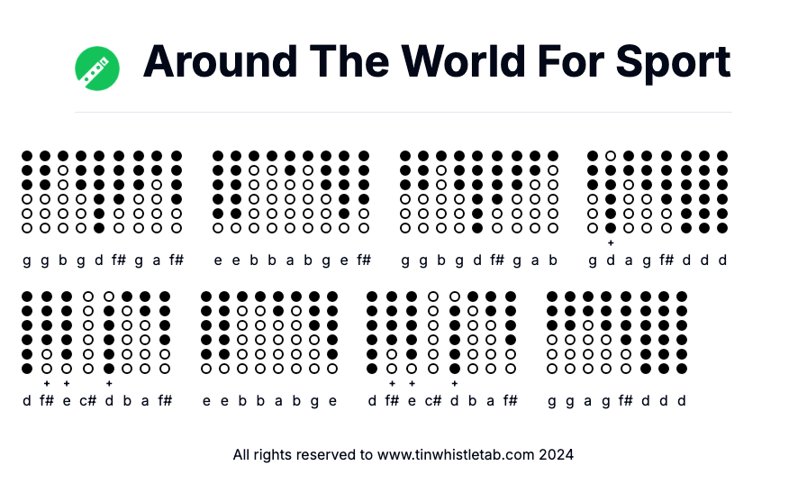 Around The World For Sport - Tin Whistle Tab & Backing Track Readable and Easy to play