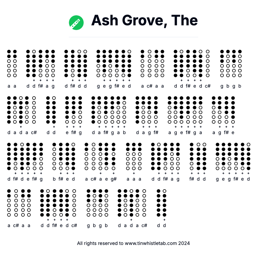 Ash Grove, The - Tin Whistle Tab & Backing Track Readable and Easy to play