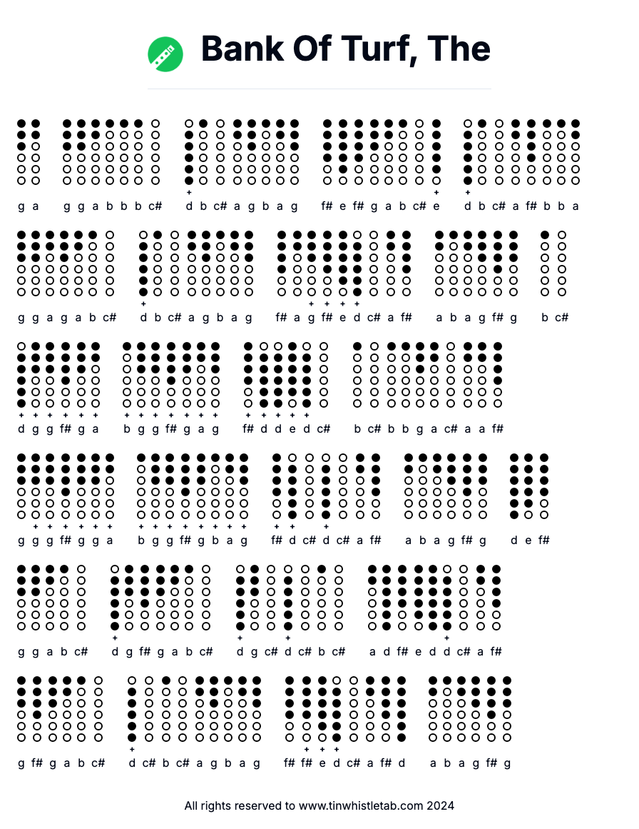 Bank Of Turf, The - Tin Whistle Tab & Backing Track Readable and Easy to play