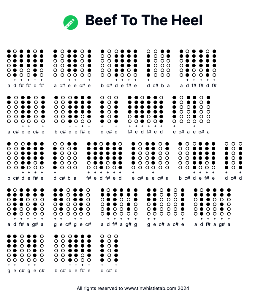 Beef To The Heel - Tin Whistle Tab & Backing Track Readable and Easy to play