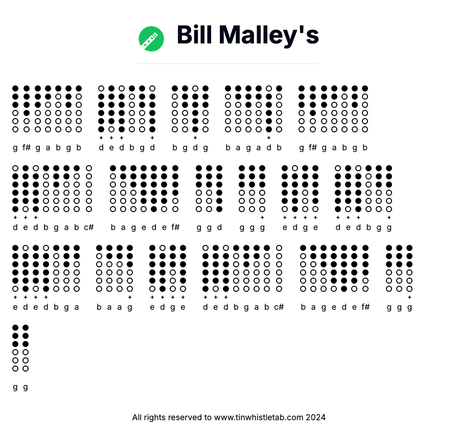 Bill Malley's - Tin Whistle Tab & Backing Track Readable and Easy to play