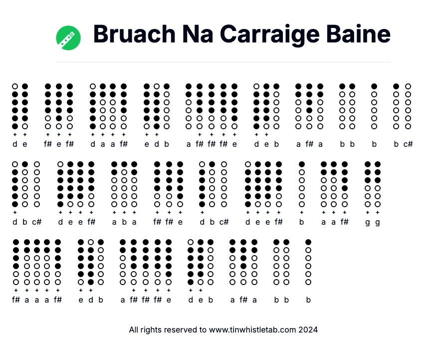 Bruach Na Carraige Baine - Tin Whistle Tab & Backing Track Readable and Easy to play