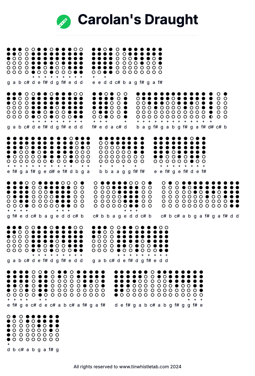 Carolan's Draught - Tin Whistle Tab & Backing Track Readable and Easy to play