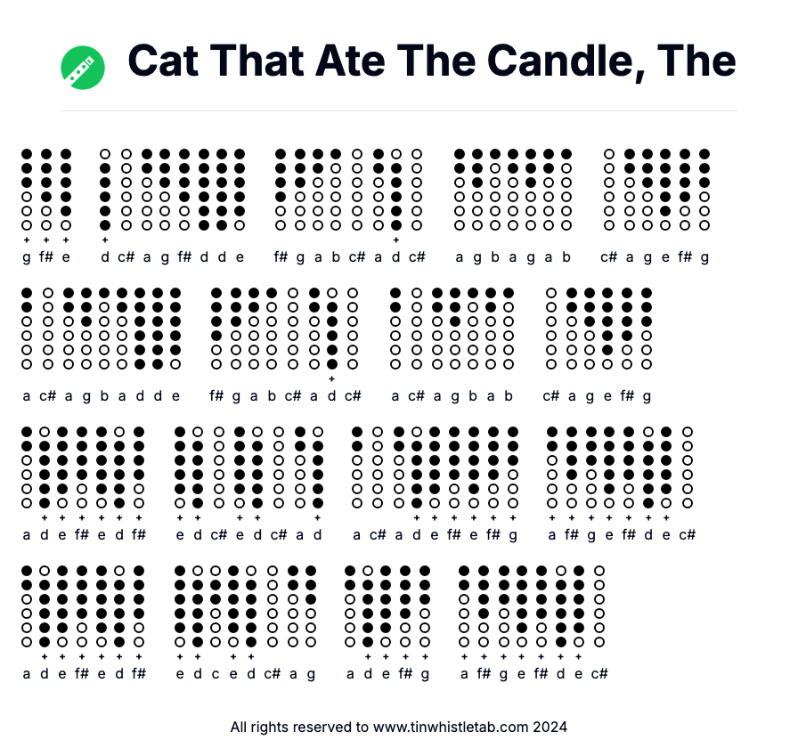Cat That Ate The Candle, The - Tin Whistle Tab & Backing Track Readable and Easy to play