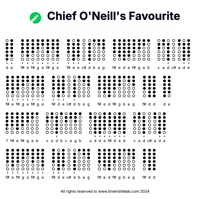 Chief O'Neill's Favourite - Tin Whistle Tab & Backing Track Readable and Easy to play