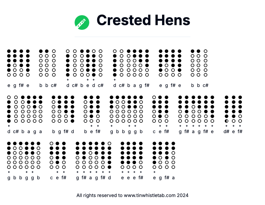 Crested Hens - Tin Whistle Tab & Backing Track Readable and Easy to play