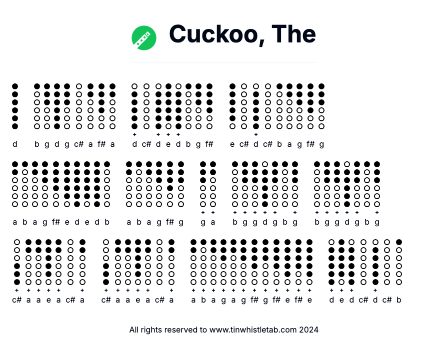 Cuckoo, The - Tin Whistle Tab & Backing Track Readable and Easy to play