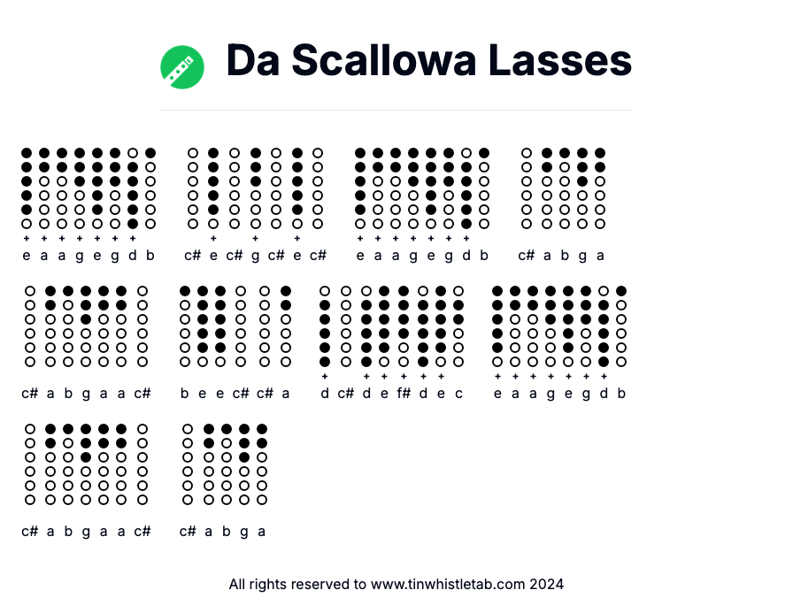 Da Scallowa Lasses - Tin Whistle Tab & Backing Track Readable and Easy to play