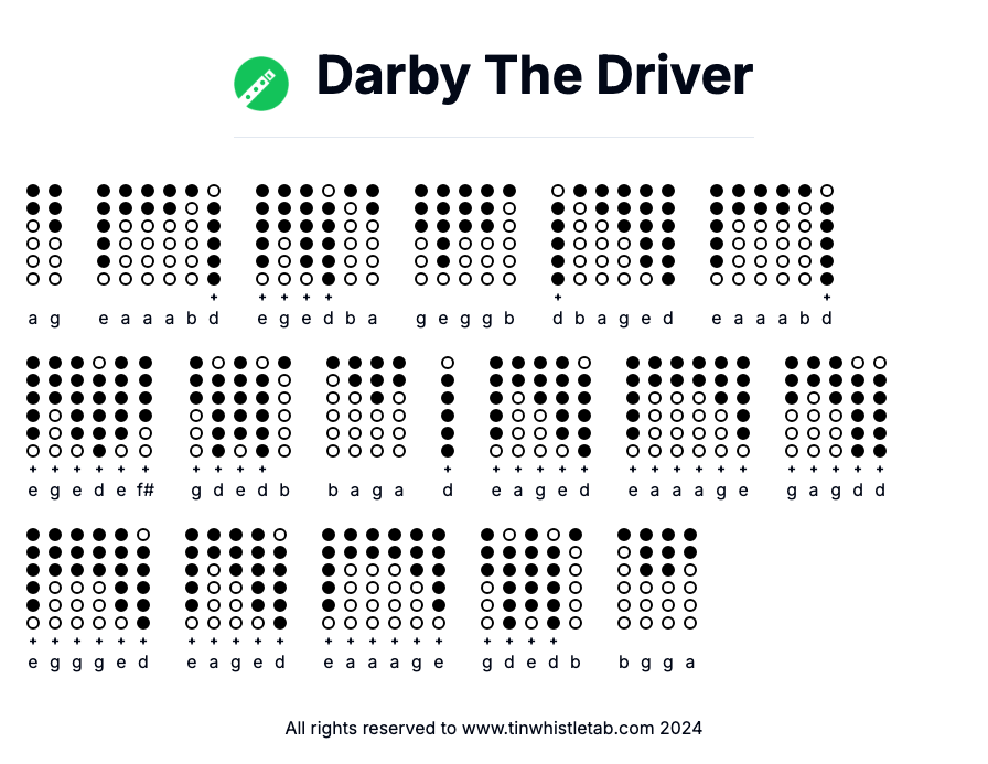 Darby The Driver - Tin Whistle Tab & Backing Track Readable and Easy to play