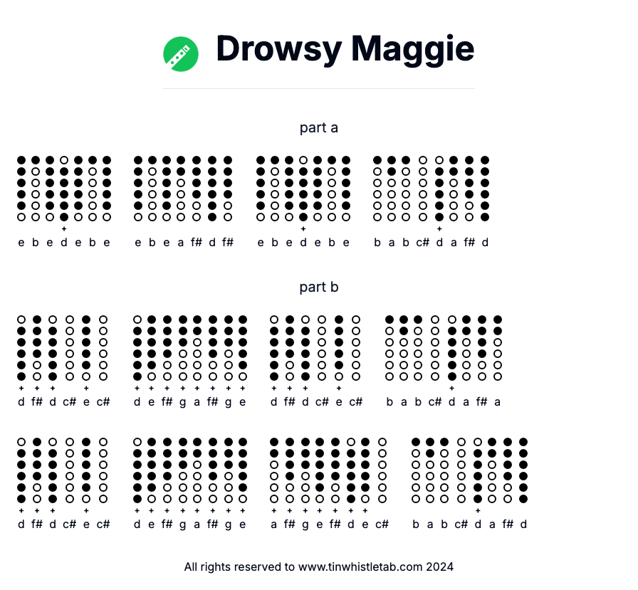 Drowsy Maggie is a lively jig known for its catchy rhythm and beautiful melody. It showcases unique phrasing, perfect for tin whistle enthusiasts!