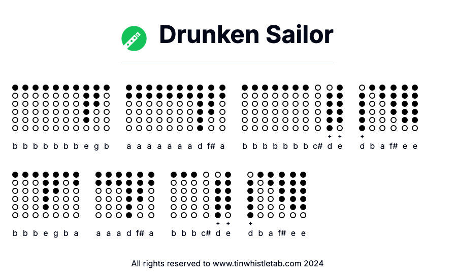 "Drunken Sailor" is a lively sea shanty. This reel features repeating phrases and playful rhythms, perfect for learning tin whistle techniques.