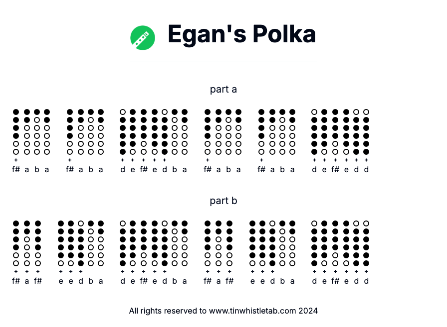 Egan's Polka is a lively dance tune featuring two catchy parts. Perfect for beginners, this upbeat polka showcases a playful melody with rhythmic variations.