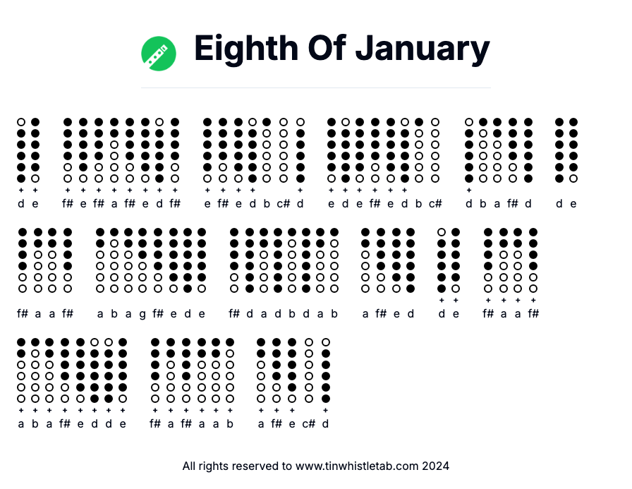 Eighth Of January - Tin Whistle Tab & Backing Track Readable and Easy to play