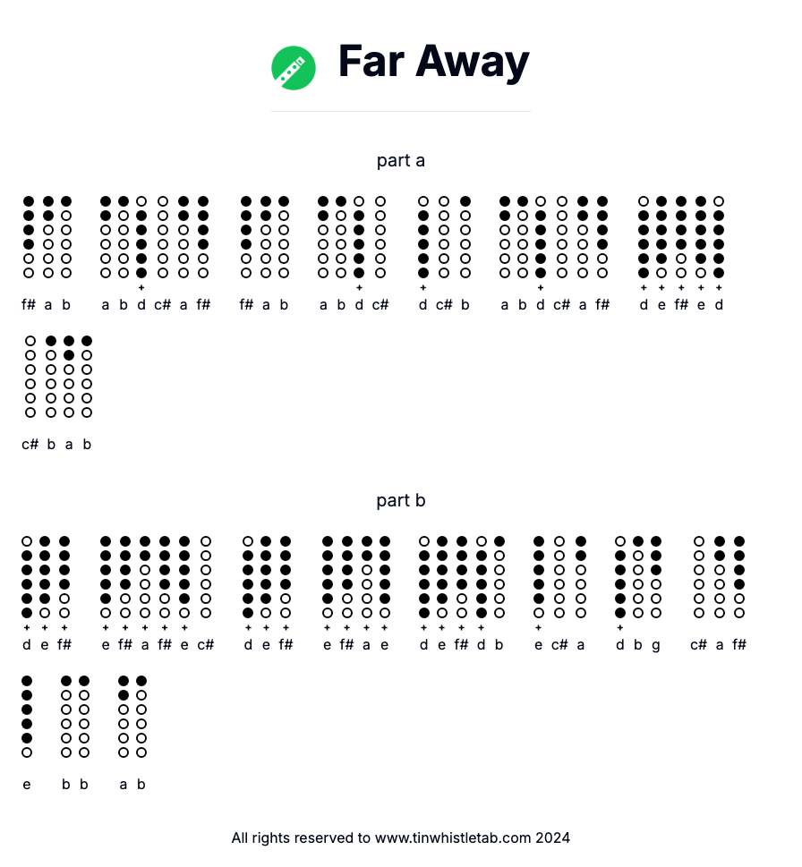 "Far Away" is a captivating reel with melodic transitions. Perfect for enhancing your tin whistle repertoire, it showcases intricate harmonies and lively rhythms.