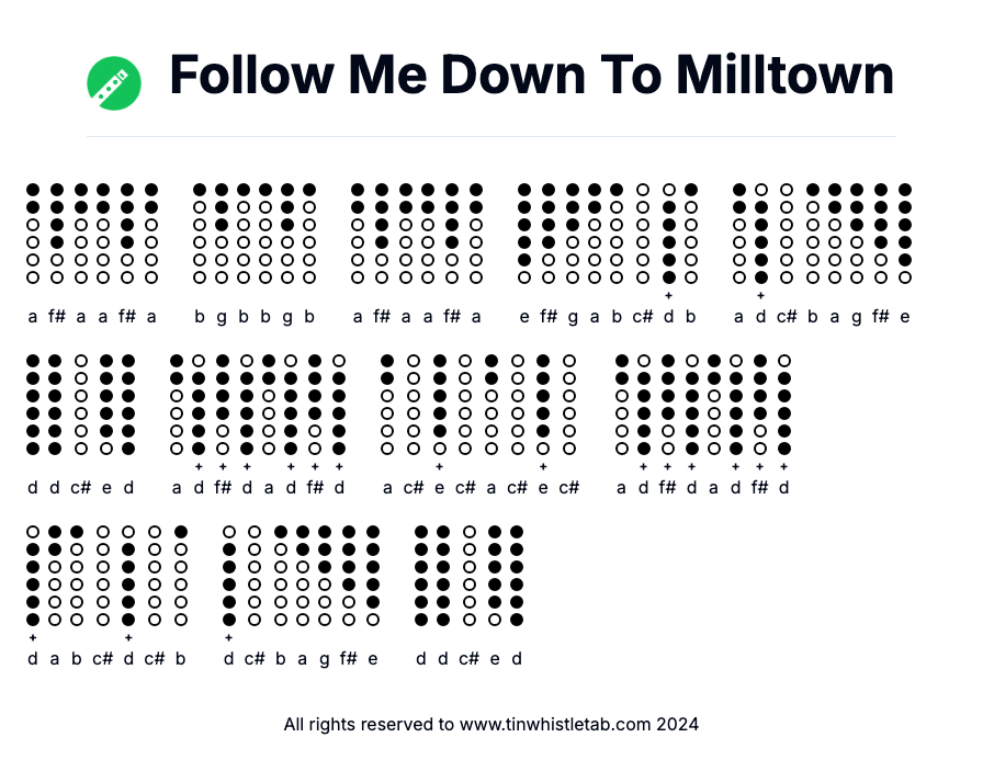 Follow Me Down To Milltown - Tin Whistle Tab & Backing Track Readable and Easy to play