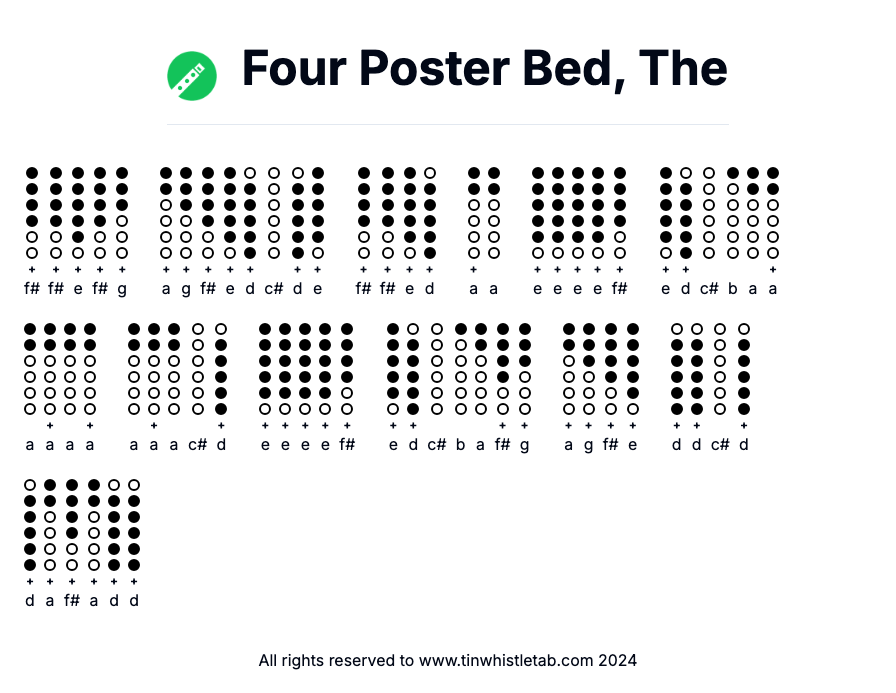 Four Poster Bed, The - Tin Whistle Tab & Backing Track Readable and Easy to play