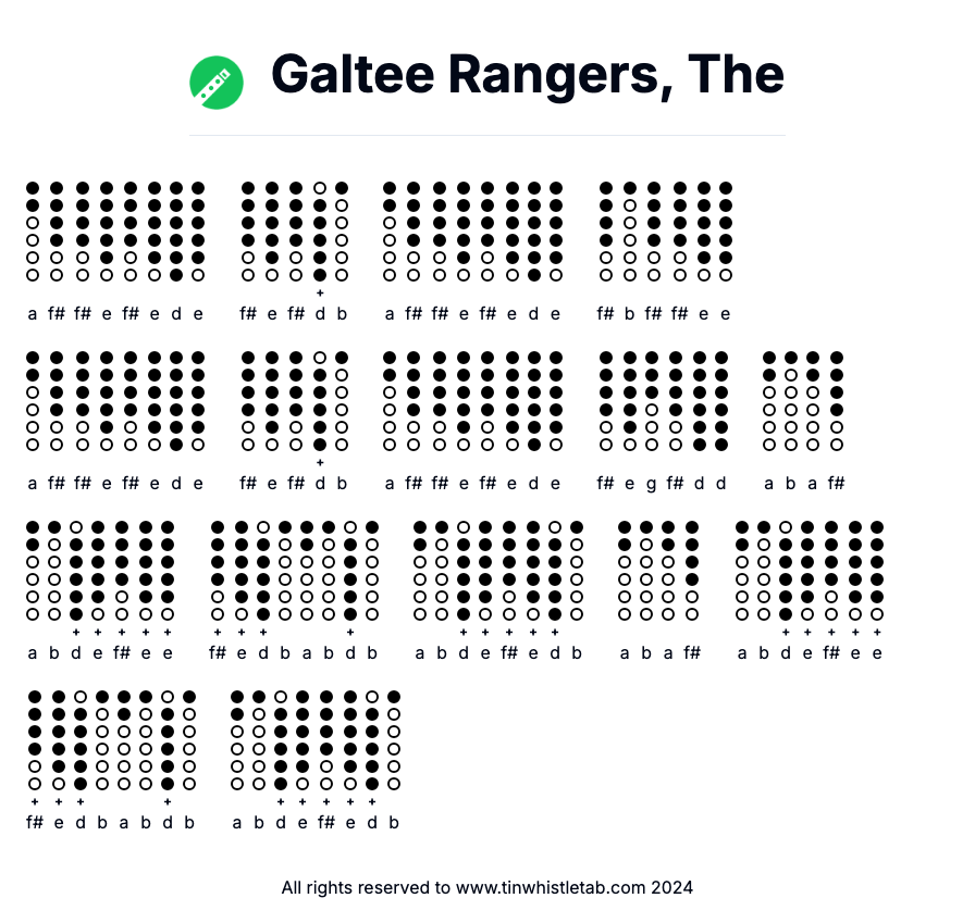 Galtee Rangers, The - Tin Whistle Tab & Backing Track Readable and Easy to play