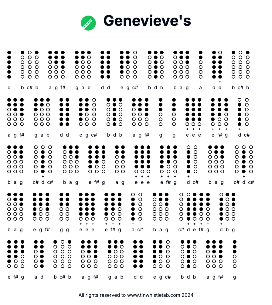 Genevieve's - Tin Whistle Tab & Backing Track Readable and Easy to play