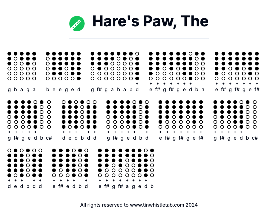 Hare's Paw, The - Tin Whistle Tab & Backing Track Readable and Easy to play