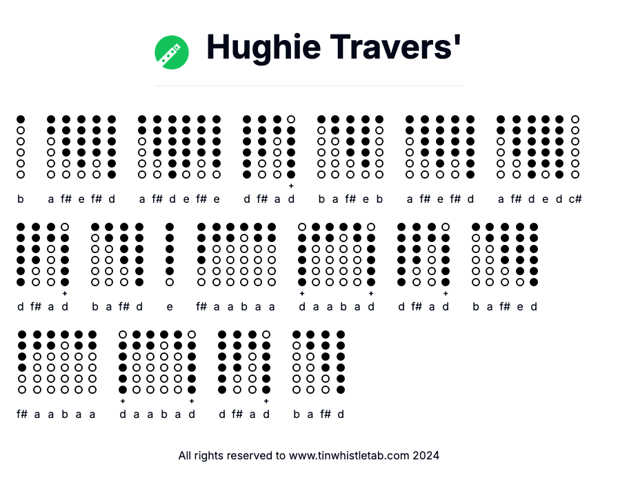 Hughie Travers' - Tin Whistle Tab & Backing Track Readable and Easy to play