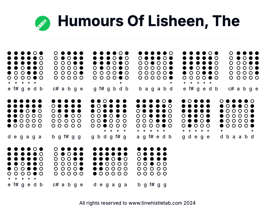 Humours Of Lisheen, The - Tin Whistle Tab & Backing Track Readable and Easy to play