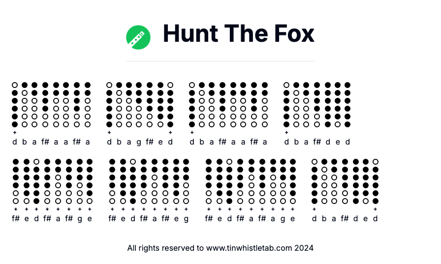 Hunt The Fox - Tin Whistle Tab & Backing Track Readable and Easy to play