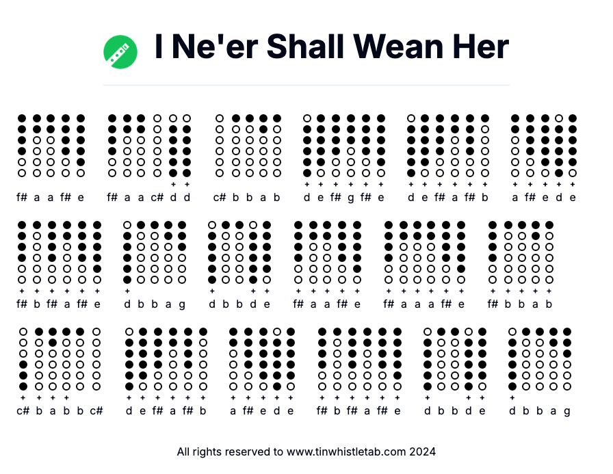 I Ne'er Shall Wean Her - Tin Whistle Tab & Backing Track Readable and Easy to play