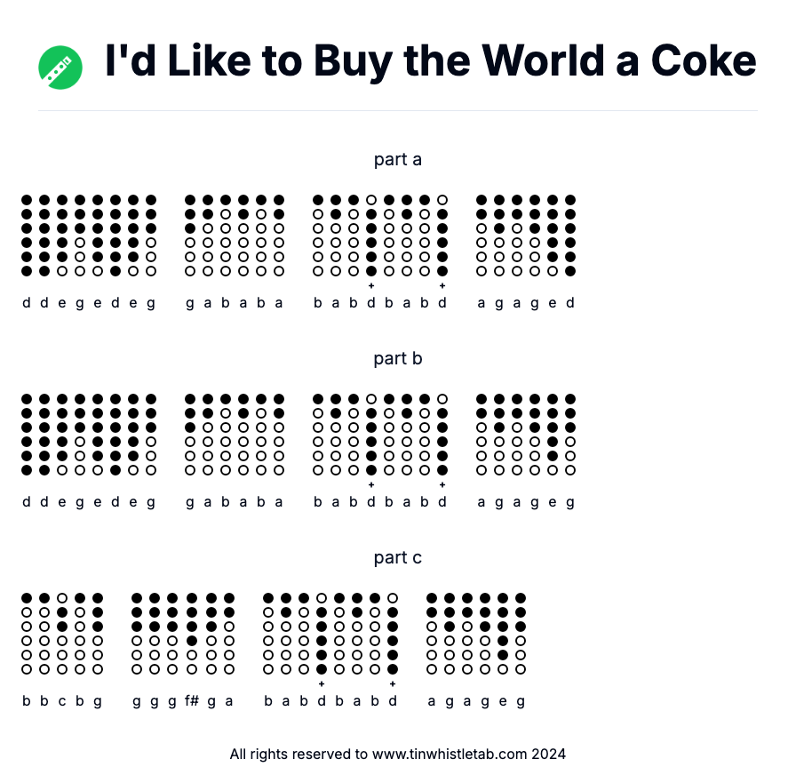 Learn to play "I'd Like to Buy the World a Coke" on tin whistle! This catchy tune features easy-to-follow notes, perfect for beginners.