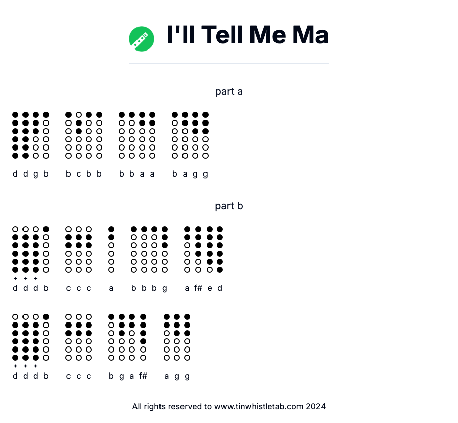 Enjoy the lively "I'll Tell Me Ma," a classic Irish jig featuring a catchy melody and playful rhythms, perfect for showcasing your tin whistle skills.