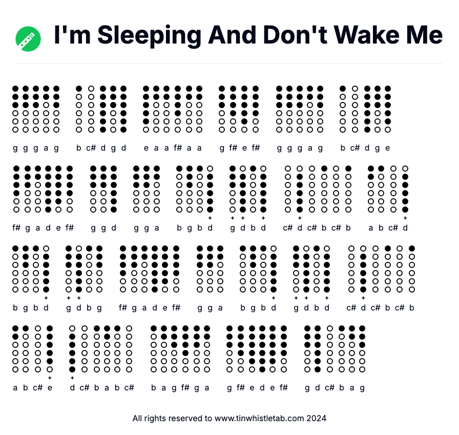 I'm Sleeping And Don't Wake Me - Tin Whistle Tab & Backing Track Readable and Easy to play