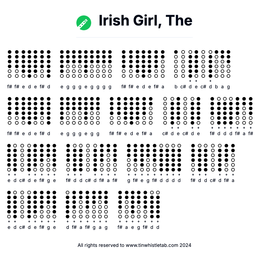Irish Girl, The - Tin Whistle Tab & Backing Track Readable and Easy to play