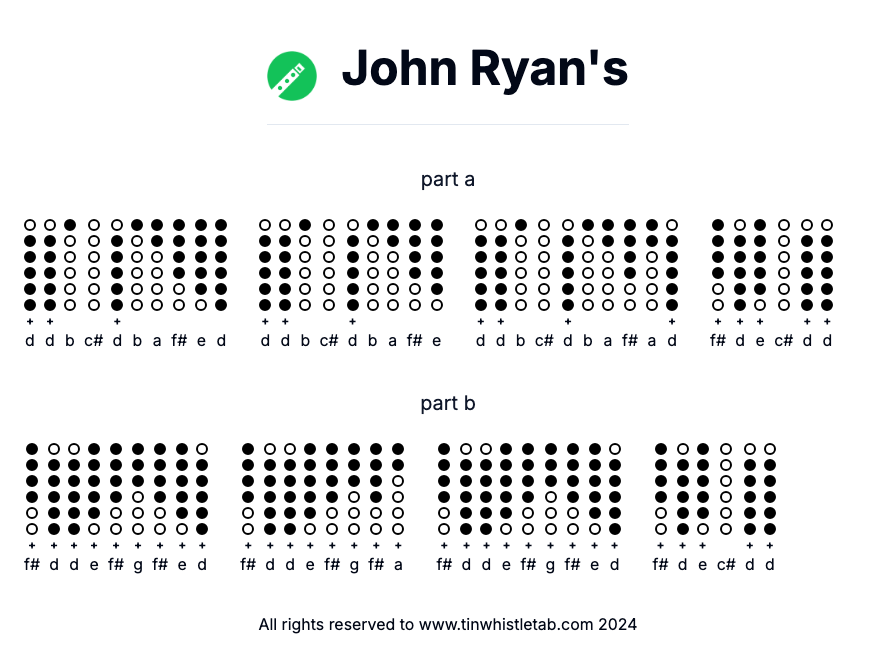 Explore "John Ryan's," a lively jig featuring catchy melodies and smooth transitions. Perfect for players looking to enhance their tin whistle skills!