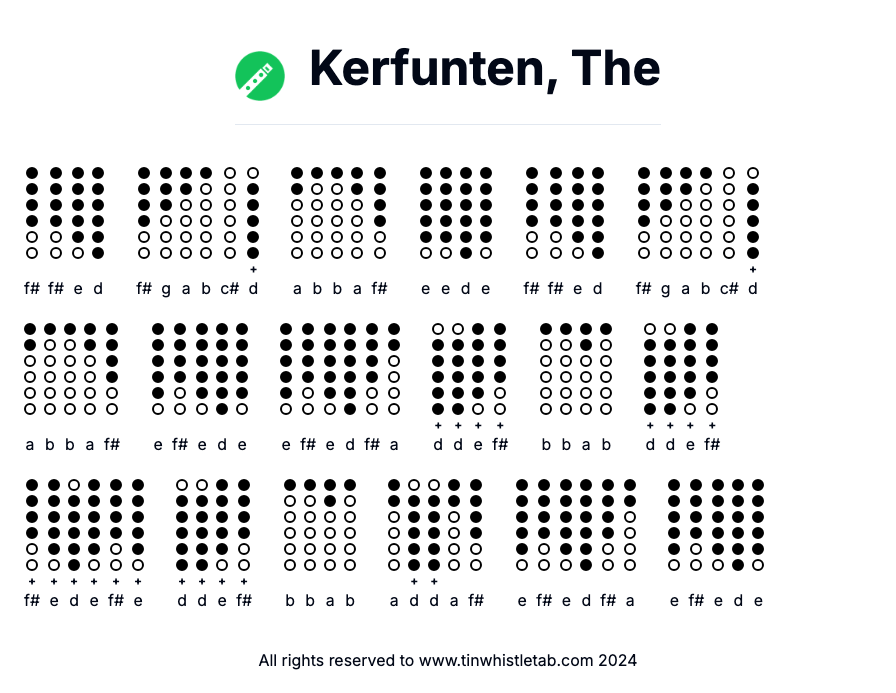 Kerfunten, The - Tin Whistle Tab & Backing Track Readable and Easy to play