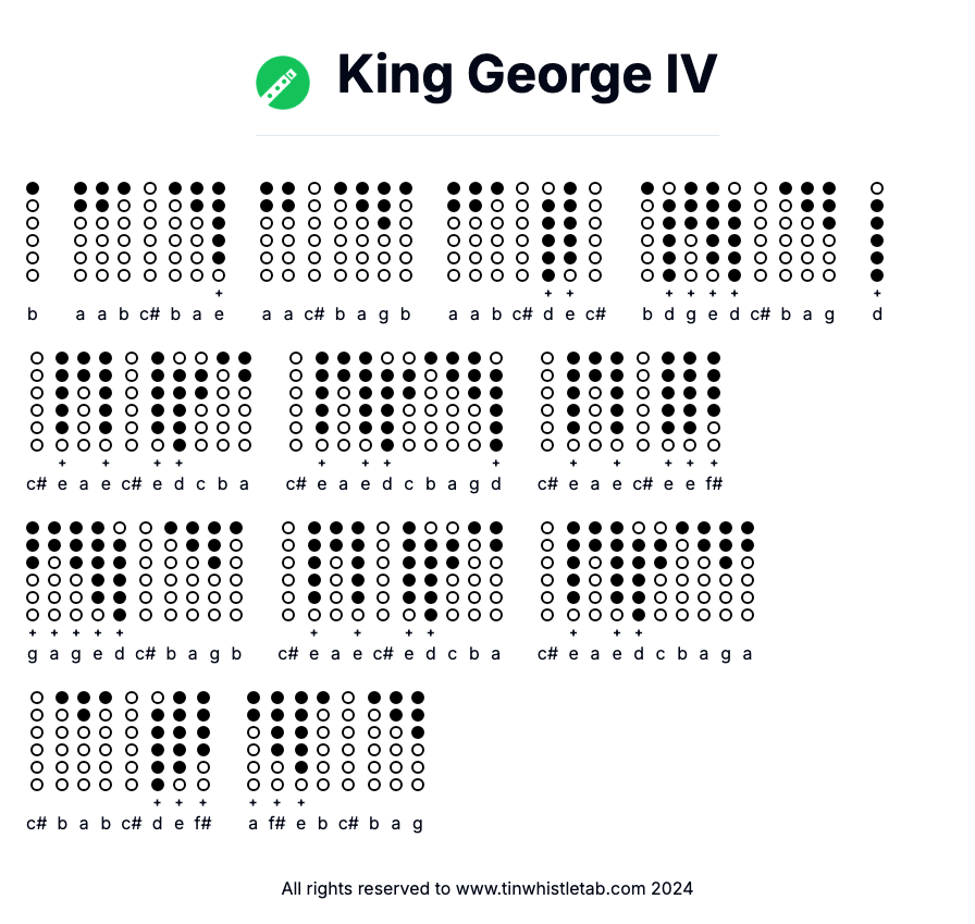 King George IV - Tin Whistle Tab & Backing Track Readable and Easy to play