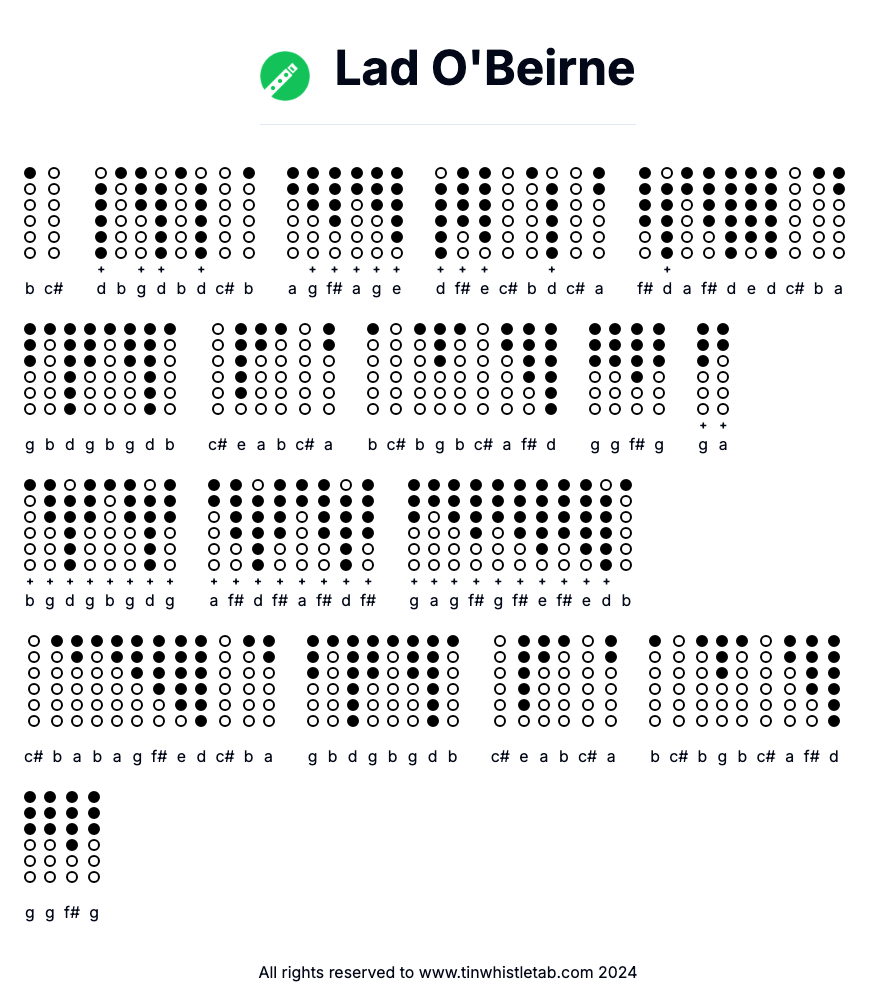 Lad O'Beirne - Tin Whistle Tab & Backing Track Readable and Easy to play