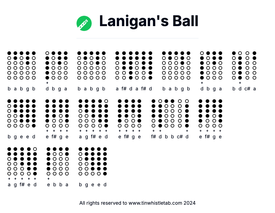 Lanigan's Ball - Tin Whistle Tab & Backing Track Readable and Easy to play