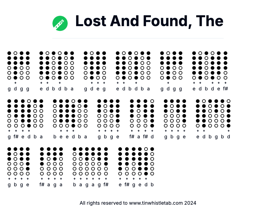 Lost And Found, The - Tin Whistle Tab & Backing Track Readable and Easy to play