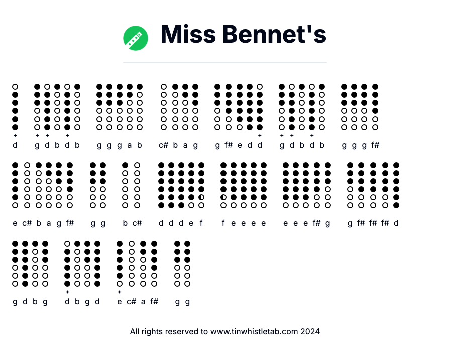 Miss Bennet's - Tin Whistle Tab & Backing Track Readable and Easy to play