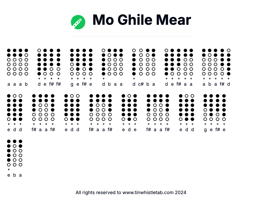Mo Ghile Mear - Tin Whistle Tab & Backing Track Readable and Easy to play