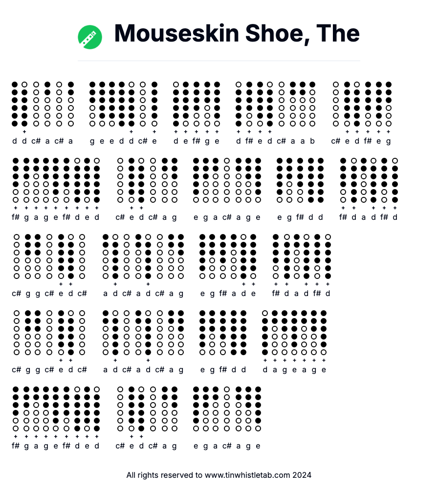Mouseskin Shoe, The - Tin Whistle Tab & Backing Track Readable and Easy to play