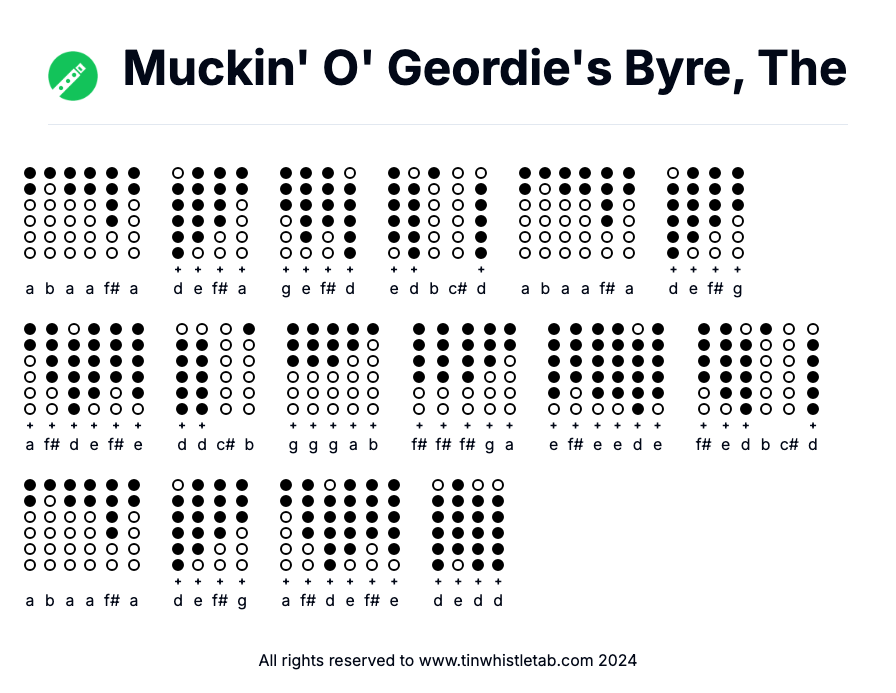 Muckin' O' Geordie's Byre, The - Tin Whistle Tab & Backing Track Readable and Easy to play