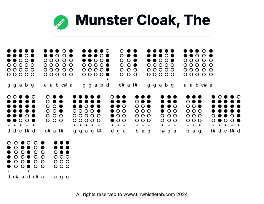 Munster Cloak, The - Tin Whistle Tab & Backing Track Readable and Easy to play