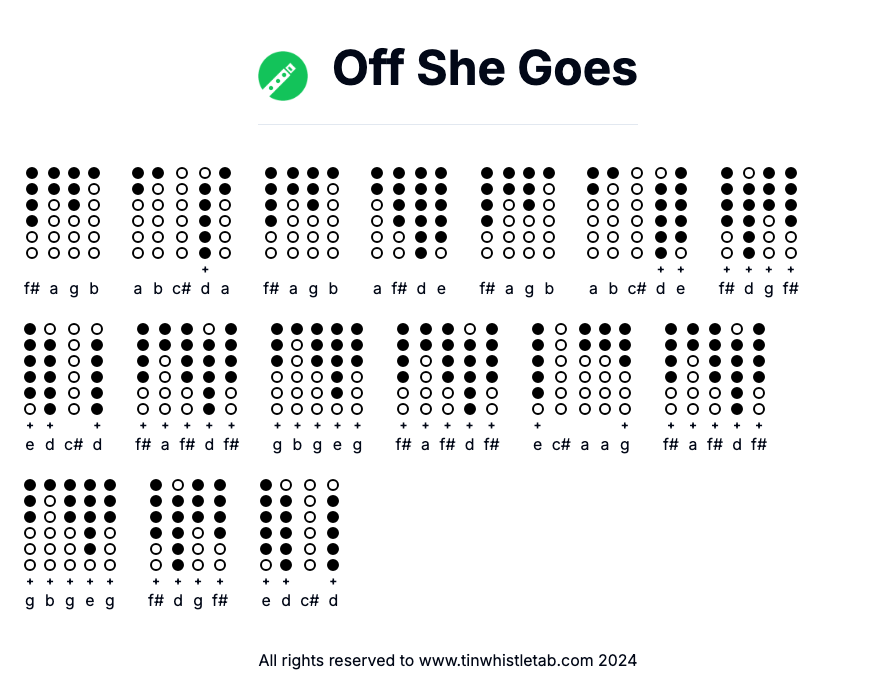 Off She Goes - Tin Whistle Tab & Backing Track Readable and Easy to play