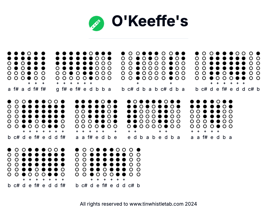 O'Keeffe's - Tin Whistle Tab & Backing Track Readable and Easy to play