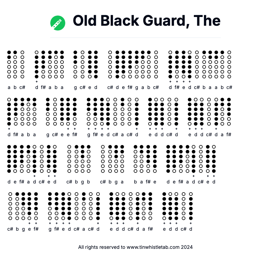 Old Black Guard, The - Tin Whistle Tab & Backing Track Readable and Easy to play