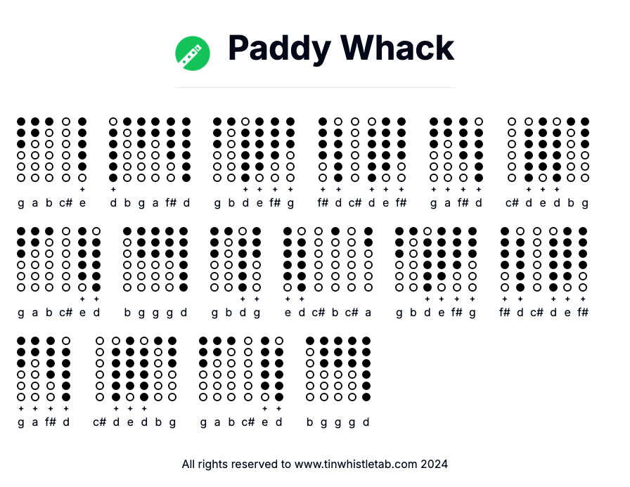 Paddy Whack - Tin Whistle Tab & Backing Track Readable and Easy to play