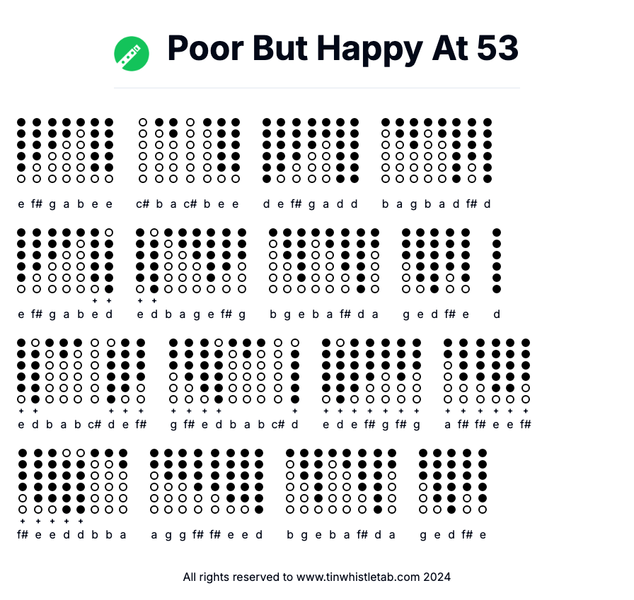 Poor But Happy At 53 - Tin Whistle Tab & Backing Track Readable and Easy to play
