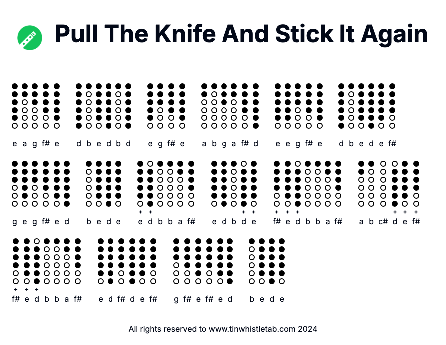 Pull The Knife And Stick It Again - Tin Whistle Tab & Backing Track Readable and Easy to play