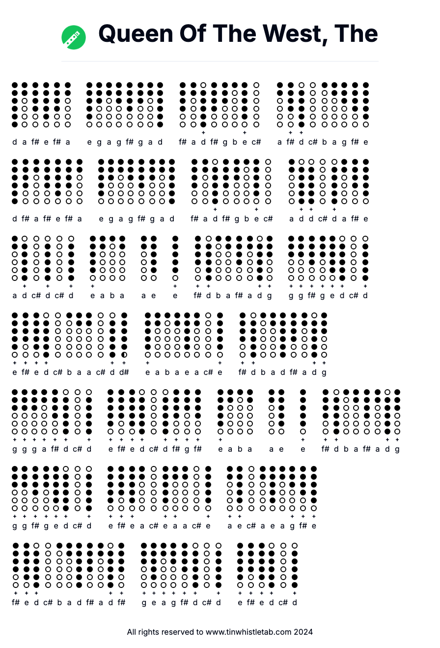 Queen Of The West, The - Tin Whistle Tab & Backing Track Readable and Easy to play